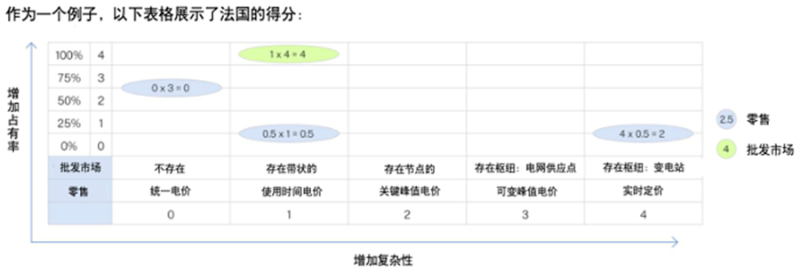 第一个指标衡量的是电力批发市场的改革。批发市场中的定位边际定价(LMP)越多,电力零售商就越有动力向消费者提供实时价格(参考文献4,请后台留言联系我们下载)。定价水平越细的城市得分越高。例如,变电站(低压/中压)层面的实时定价比电网供应点或区域节点的实时定价得分更高。当城市没有定位边际定价或者价格因区域而异,批发价格没有任何关键的峰值或实时因素时,城市的得分最低。通常国家规则适用于国内的城市,因此我们分析了国家的市场运作方式来推断城市层面的得分。