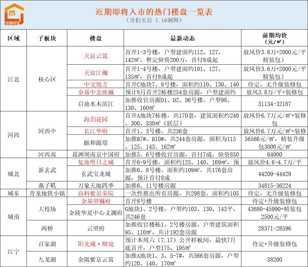 今日,哥们买房针对近期即即将入市的抢手楼盘做了整理,触及江北中心区、南部新城大校场、河西等各个板块,期望能为我们一人一次的“慎重报名”带来协助。